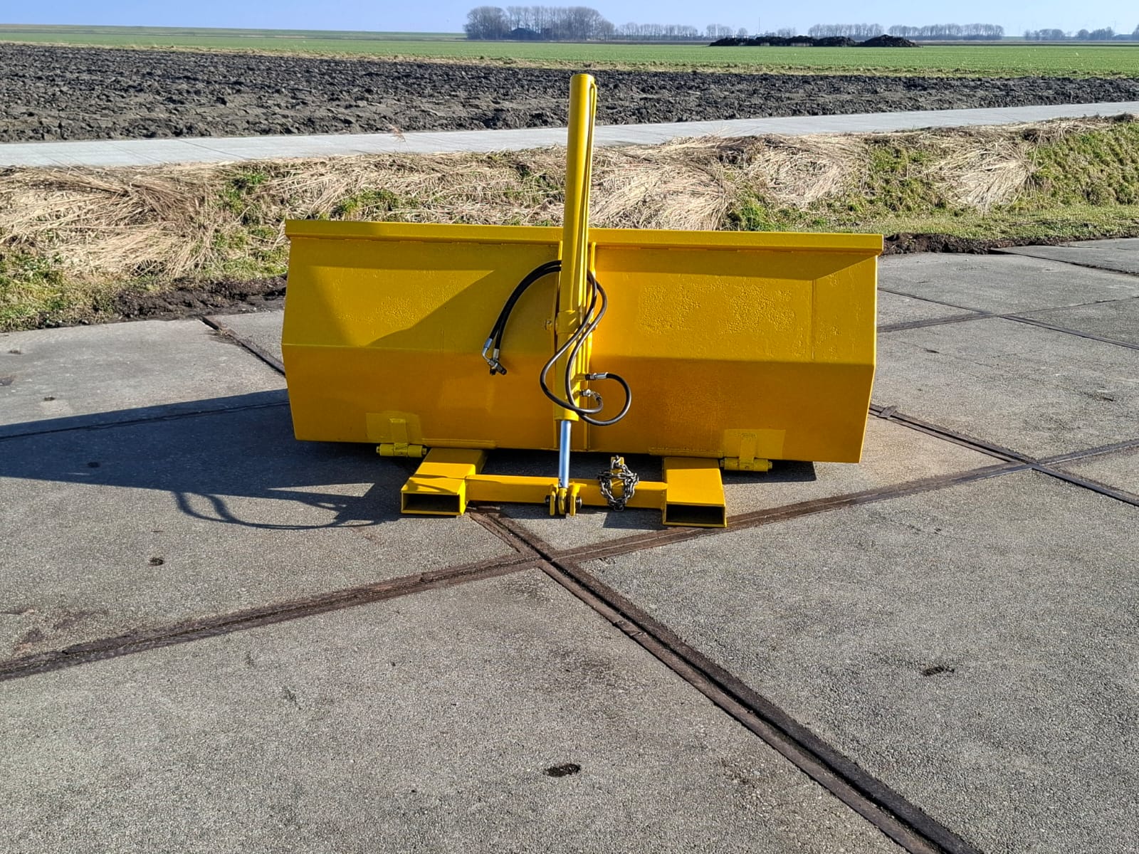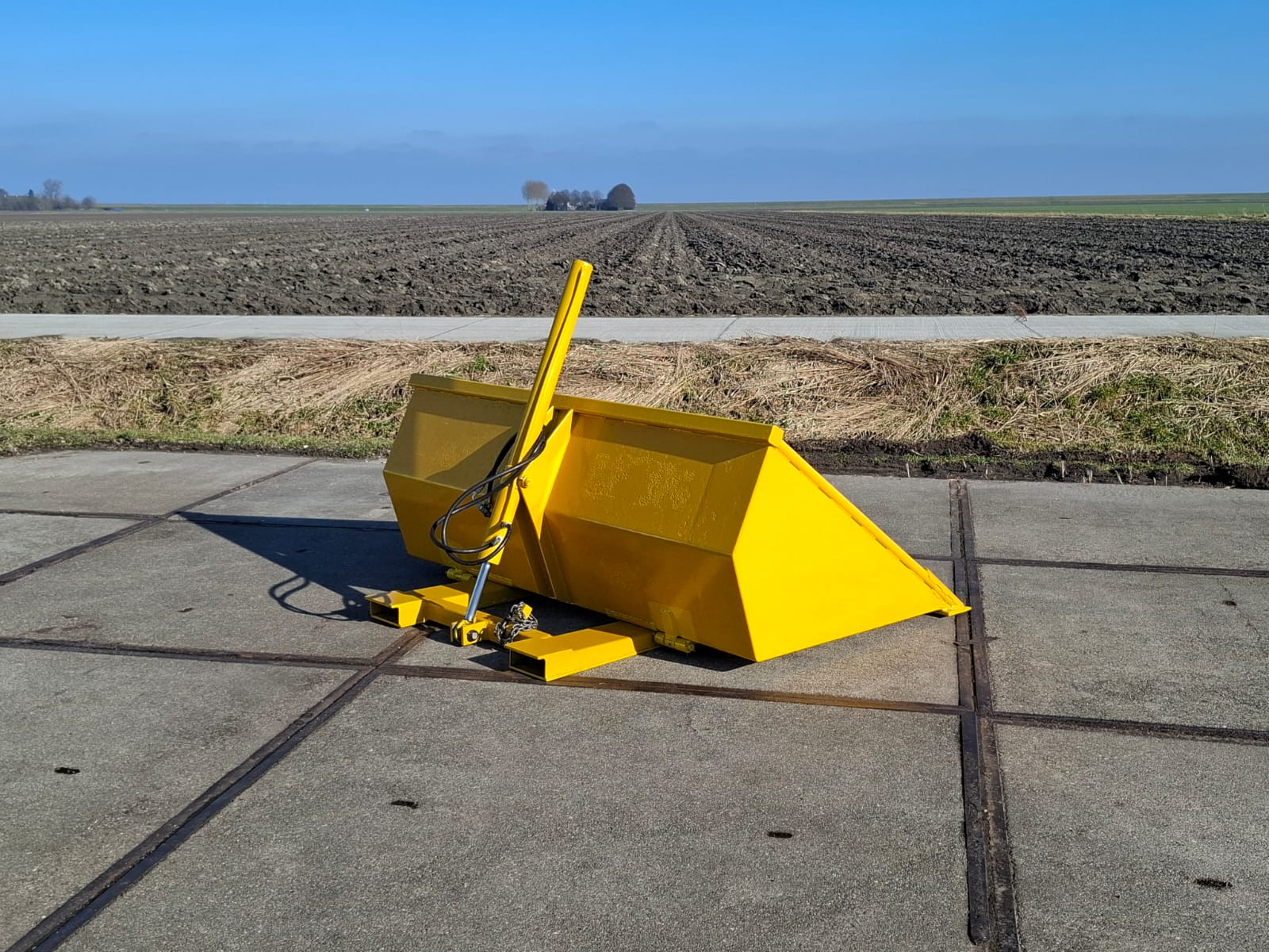 Een zo goed als nieuwe Keulmac schepbak — praktisch direct inzetbaar en afkomstig van een van de bekendste Nederlandse fabrikanten van agrarische machines uit de Noordoostpolder.
